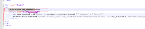 然后我們?cè)诰W(wǎng)站的footer.htm文件中用標(biāo)簽{dede:global.cfg_powerby/}進(jìn)行調(diào)用。根據(jù)自己網(wǎng)站的實(shí)際情況來(lái)調(diào)用位置。